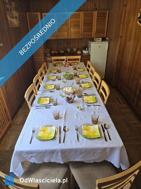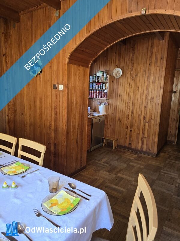 Duży dom z bezpośrednio położony przy lesie z podwórkiem niemal wchodzącym w las. Budynek jest na tyle wielki, że pomieści dwie rodziny. Ma rozdzielne wejścia. Jest też budynek gospodarczy, który po remoncie można przeznaczyć na działalność produkcyjną czy usługową. Dom wykończony niemal w całości w wysokiej jakości drewna litego. Jest oryginalny wystrój, ale też zdrowy. Nadaje się do zamieszkania od razu. Powierzchnia domu to 3 pietra każde prawie po 100 m2 minus klatki schodowe i tarasy. Do tego dom posiada wysoką piwnice z dwoma garażami, kotłownia i miejscem na przechowywanie.Mimo bliskości przyrody lokalizacja jest miejska. W odległości krótkiego spaceru, przystanek autobusowy, szkoła podstawowa, sklep spożywczy.