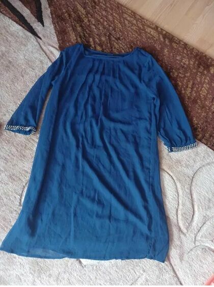 Sprzedam śliczną sukienkę damską w stanie idealnym. Idealna zarówno na co dzień jak i na imprezy okolicznościowe. Sukienka ma wszytą podszewkę. Jest wykonana z cienkiego, przewiewnego materiału.Wymiary:
