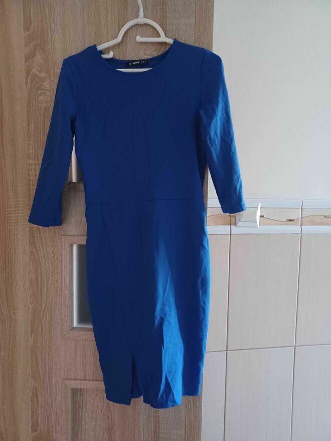 Wymiary niebieskiej sukienki z rozporkiem z przodu: