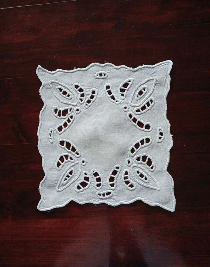 Moją ofertę stanowią serwetki wykonane ręcznie metodą szydełkową z nici oraz metodą richelieu . Serwetki są uprane lecz nie prasowane. Posiadam : 1 ) 6 serwetek szydełkowych z białych nici o wym. 24 x24 cm. ( kwadraty ) 2) 2 serwetki okragłe o średnicy 22 cm. 3) 6 serwetek wykonanych metodą richelieu o wym. 22 x 22 cm 4) 1 serwetka wykonana metoda richelieu o wym : 47 x 47 cm. 5) 2 serwetki okrągłe o średnicy 75 cm i 35 cm w kolorze ecru. Sprzedam całość jako pakiet tylko za 100 zł + ew. koszty przesyłki.Eugenia