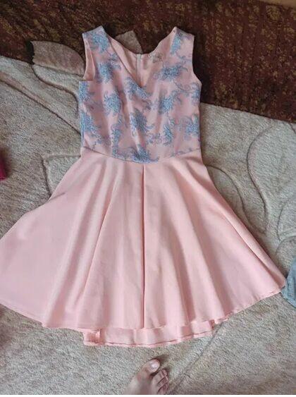 Sprzedam śliczne sukienki w stanie idealnym w rozmiarze 36. Wymiary sukienki koronkowej: obwód w pasie - 64cm obwód w ...